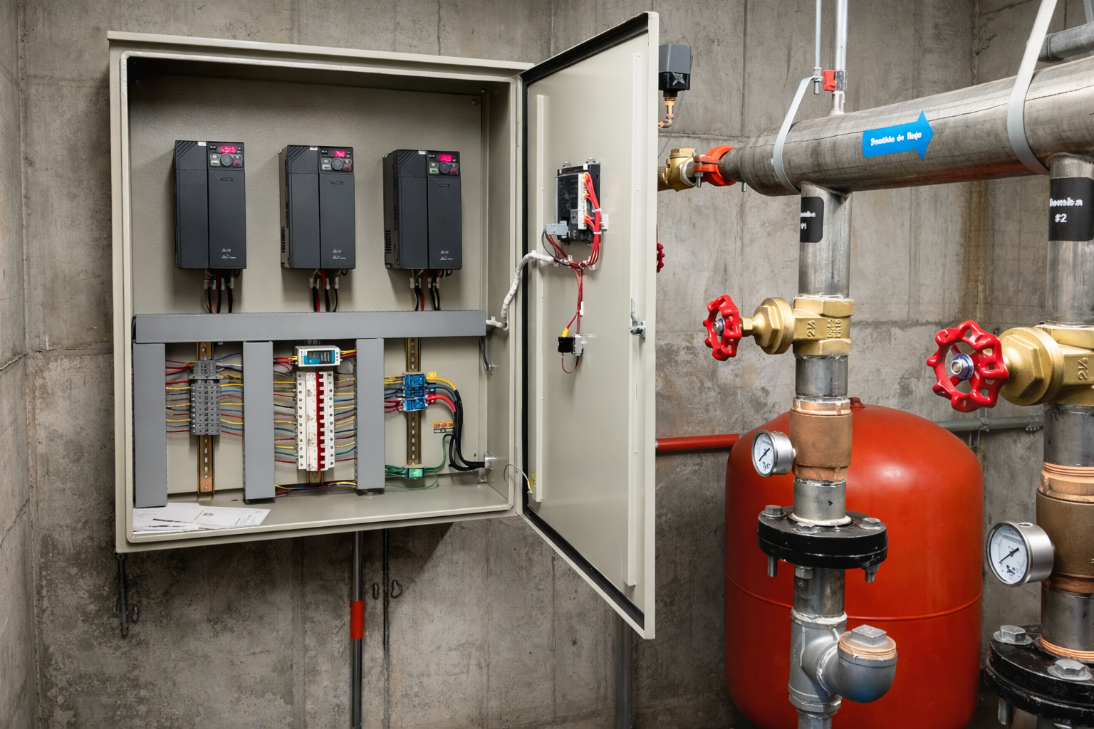 Incluye fabricación de tableros, mantenimiento de sistemas de control, revisión de variables técnicas, mantenimiento de variadores de velocidad y respaldo de programación de equipos.